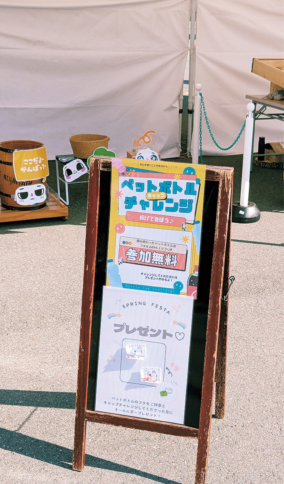 社会貢献の一環として同社では長年、エコキャップを回収して得た収益の一部をNPO法人「世界の子どもにワクチンを日本委員会」を通じて、発展途上国のこどもに送る活動をしている。この活動に共感した同施設のスタッフからエコキャップ回収イベントの企画への協力が求められ実現。イベント当日は、エコキャップ投げ入れミニゲームが実施され、キャップを見事、回収ボックスに投げ入れることができた人には景品が手渡された。用意された景品は同社に併設された就労継続支援B型事業所で作成したレインマーカーやしおりで、手にした人は「エコキャップが使われているとは思えないほど、見た目も素敵、使い勝手もよさそう」と感想を述べた。