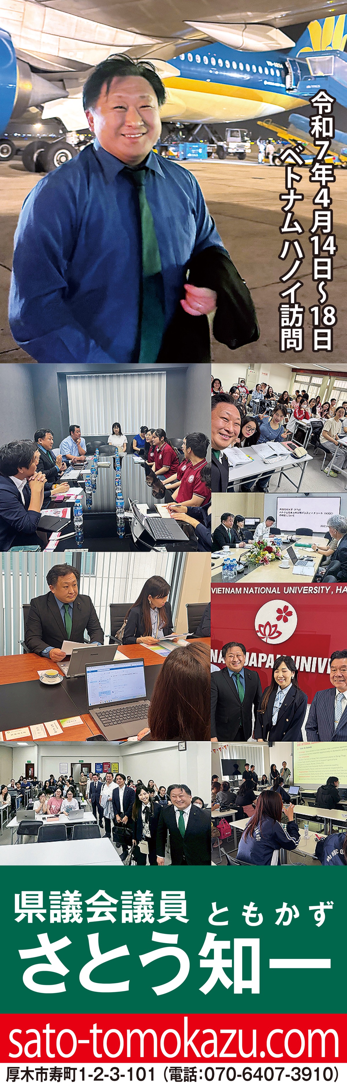 県議団5名でベトナムハノイ市を訪問しました。視察先のアポや事前調整は全て佐藤が行いました。主な視察先は、国家大学2校、在越日本大使館、JETRО、JICA等。英語で授業を行うハノイ国家大学(順位1位)やハノイ貿易大学(同3位)では、質疑を英語で行い授業参観や学生との交流の様子も公開しています。