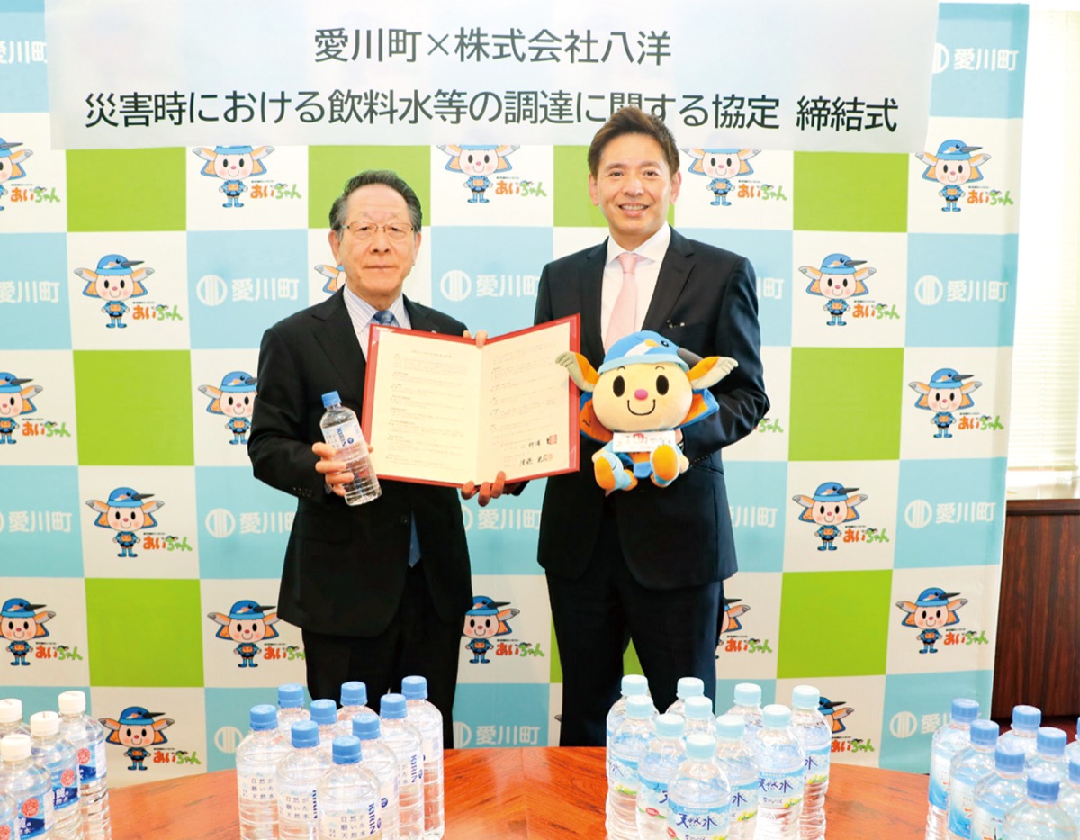 愛川町と(株)八洋(東京都、後藤晃宏社長)は4月21日、災害時における飲料水等の調達に関する協定を締結した。