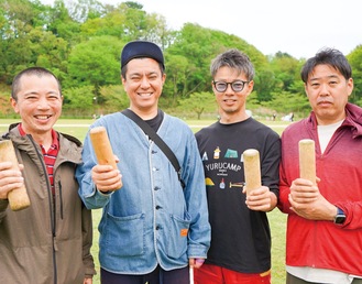 ジャパンオープンは一般社団法人日本モルック協会が主催する全国規模の大会。市制70周年事業として厚木市での開催が決まり、市内ではモルック熱も高まっている。市民枠を決める「モルック厚木カップ」(厚木モルック連盟)が今年1月から3回開かれ、「はやしモルック会」(村上智史さん、財前義史さん、古田学さん、山口勇人さん)が代表に選ばれた。