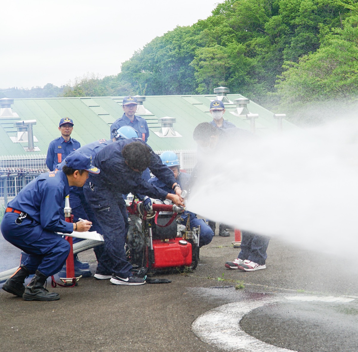 検査を担当する民間業者が、エンジン気筒圧縮圧力、真空度、放水量について、測定器を使いながら数値を計測。エンジンの回転数を一時的に上げる音が訓練場に響いた。また問題や異常がないかを団員と共に確認し、詳細な説明を行っていた。