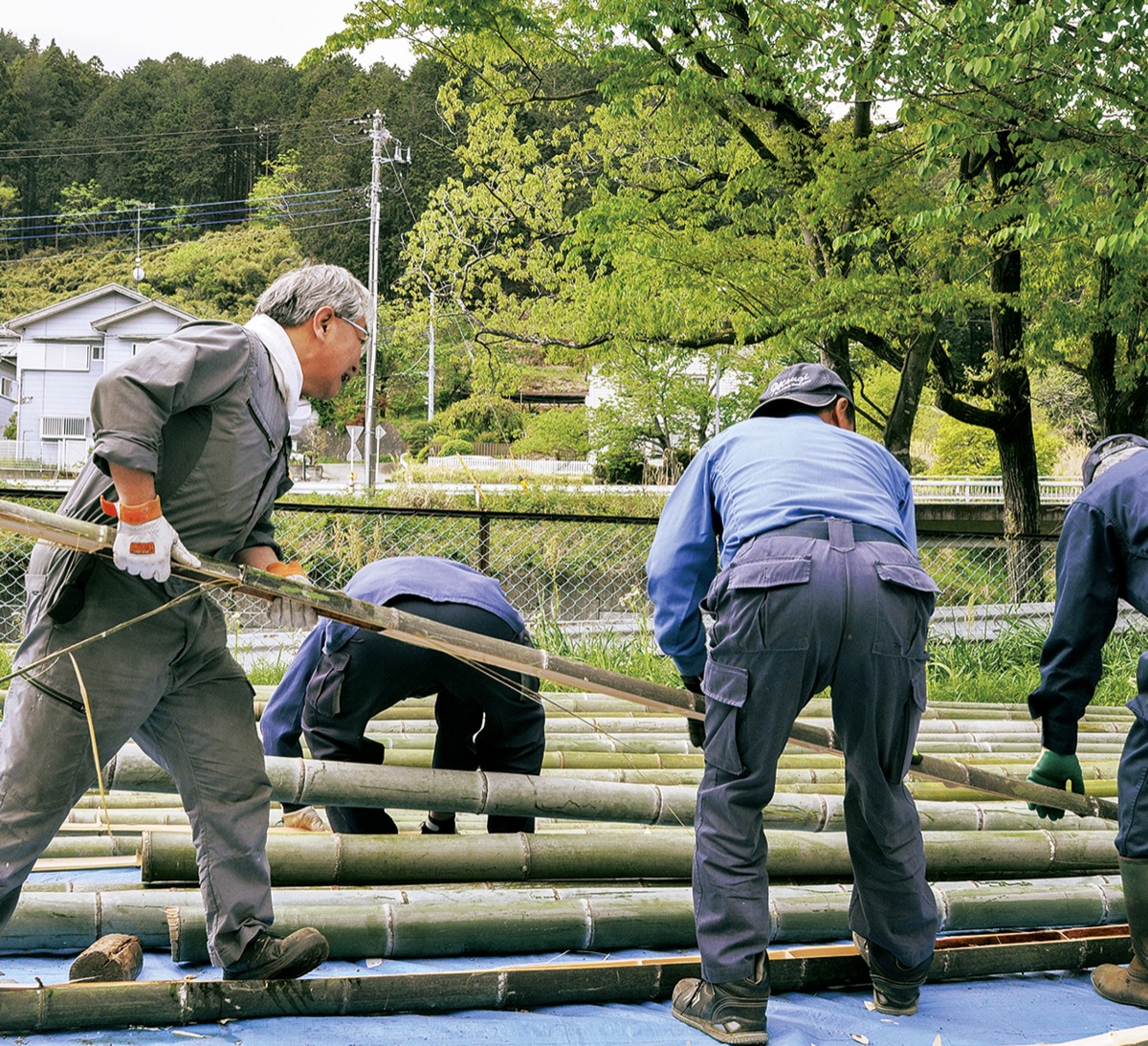 青龍保存会の五本木半三会長は「最近は太い竹が見当たらない。6月からは茅刈りや、わらをこも編みしたりと龍を作る作業を、どんどん進めていく」と話した。