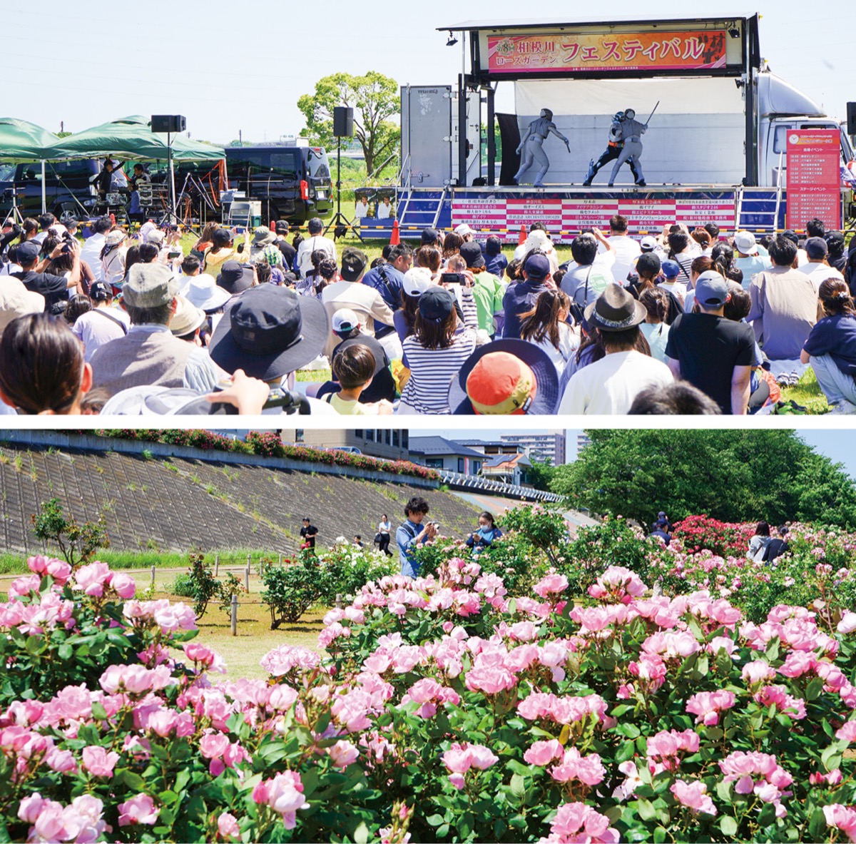 厚木市旭町の相模川河川敷にある相模川ローズガーデンが見頃を迎え、5月17日(土)には第9回「相模川ローズガーデンフェスティバル」が開催される。時間は午前10時から午後4時まで。入場・観覧無料。