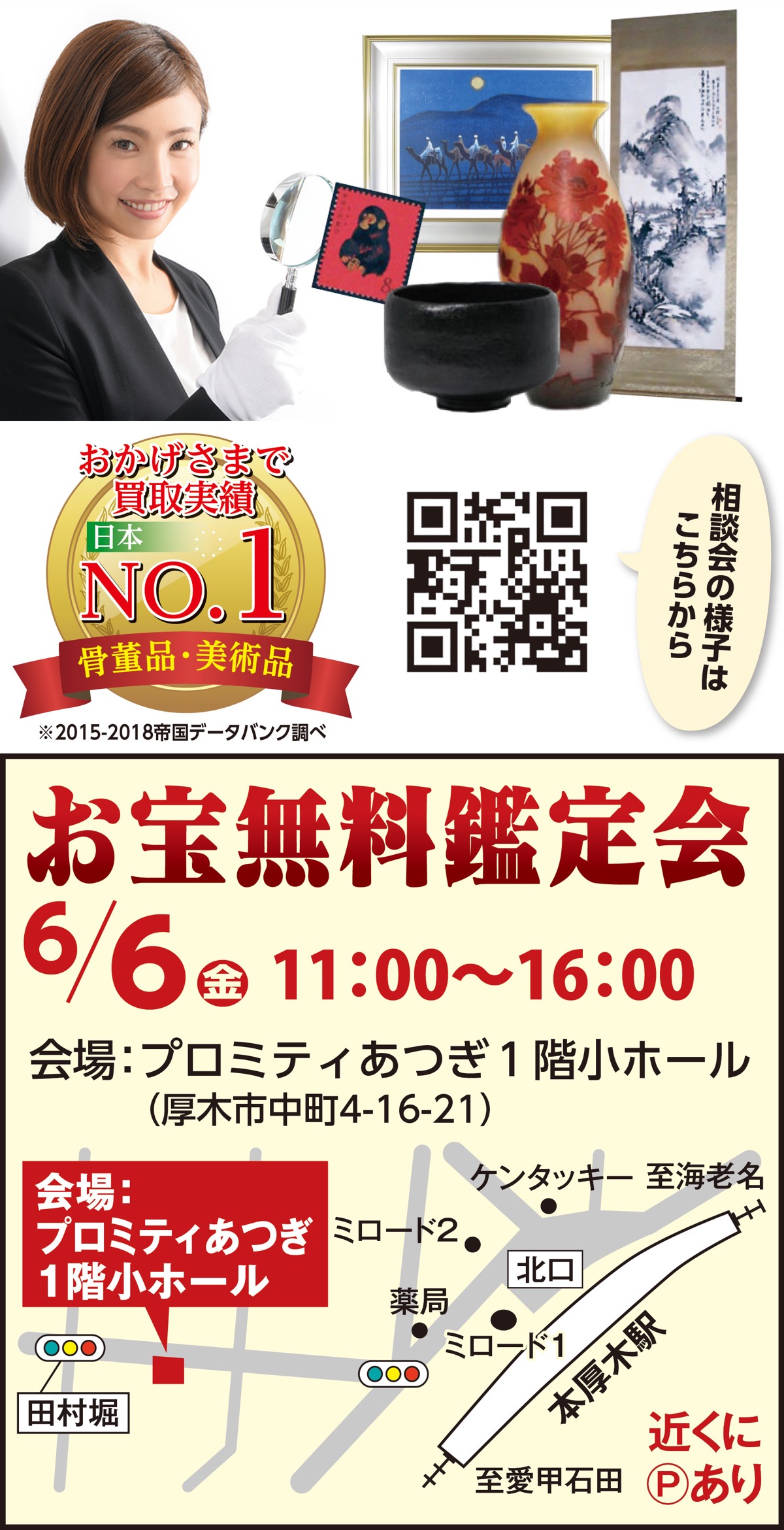 6月6日「お宝無料鑑定会」開催 出張査定も受付中