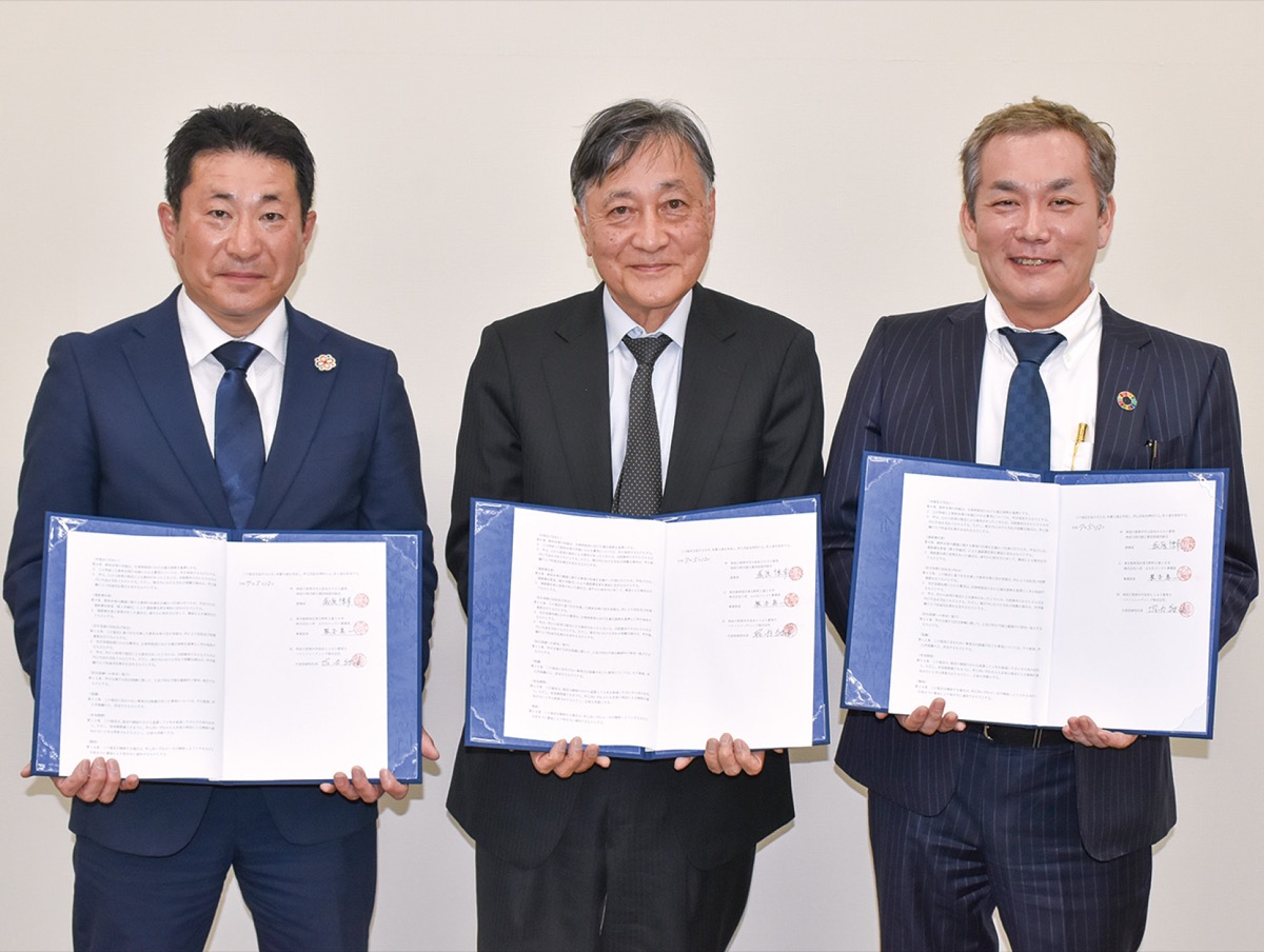 ベストトレーディイング(株)(堀内継由社長)は5月12日に愛川町にある神奈川県内陸工業団地協同組合(歳原博幸理事長)と、自動販売機の管理ならびにメンテナンスを行う株式会社八洋(後藤晃宏社長)と共に「災害時における飲料水等の調達に関する協定」を結んだ。