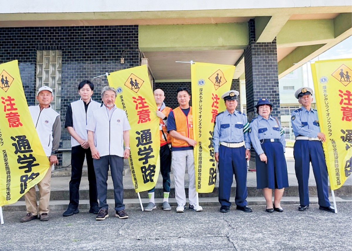 厚木もみじライオンズクラブ(又村秀会長)と交通指導員睦合南支部(永野保夫支部長)はこのほど合同で、清水小学校と妻田小学校に対して児童の通学路に設置する旗を寄贈した。