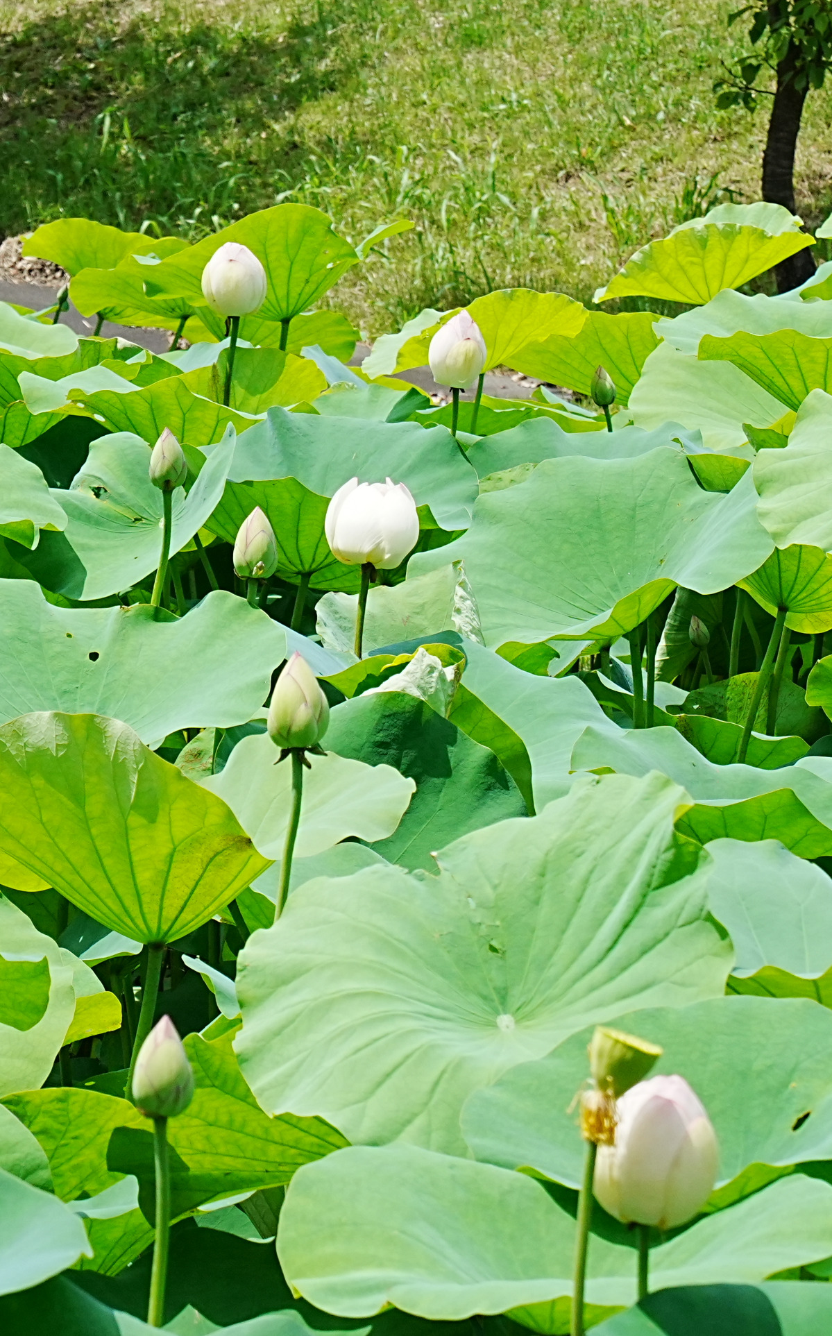 ハスは仏教では神聖な花とされていて、午前中に花を咲かせて、午後には閉じてしまうのが特徴になっている。池には全体にハスが広がっていて、一斉に咲きだすと、見ごたえのある雰囲気に包まれる。