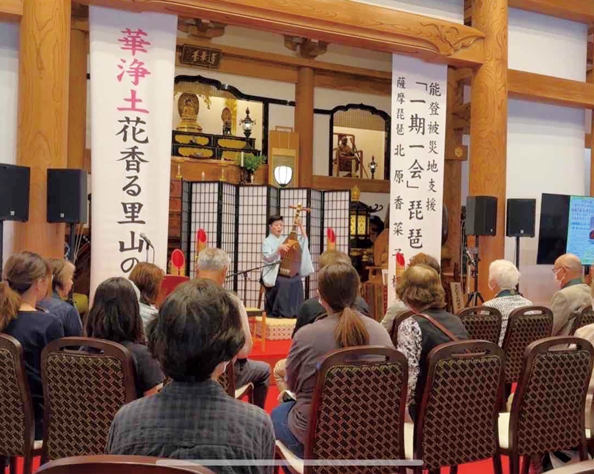 厚木市棚沢の常昌院(天利俊介住職)で6月14日、地域と寺を結ぶ参加型イベント「テラトモ」が4年ぶりに開催された。今回は能登半島地震の復興を願う初のチャリティコンサートとして行われ、約150人が来場し、薩摩琵琶奏者の北原香菜子さんが奏でる音色に耳を傾けた。