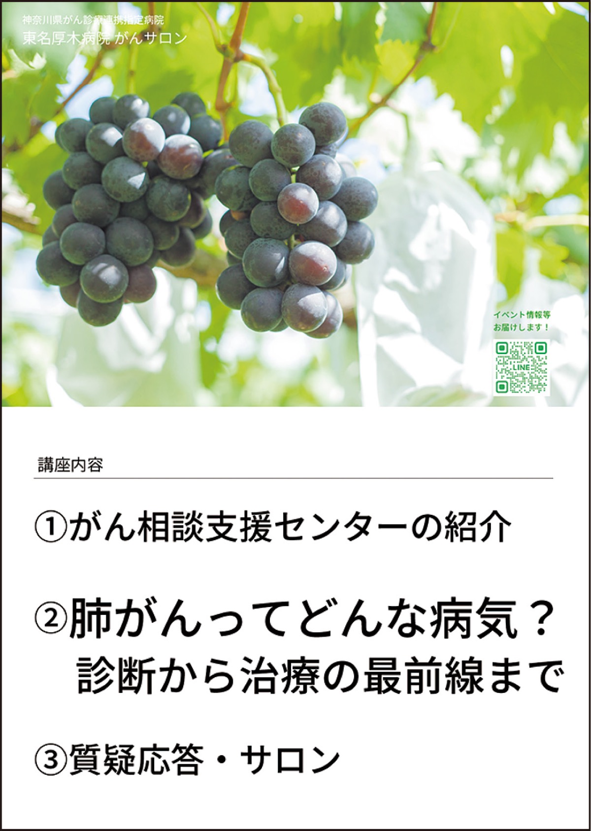 東名厚木病院のがんサロン「肺がんってどんな病気?」が7月26日(土)、厚木市中町のアミューあつぎ6Fルーム601・602で開催される。参加無料。14時から16時(13時30分受付)。