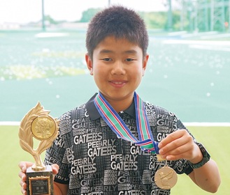 神奈川県アマチュアゴルフ選手権2025・小学生の部が6月22日、相模湖カントリークラブ(相模原市緑区/5566ヤード、パー72)で行われ、相川小6年の村上蓮さんがトータル70で優勝した。村上さんは念願の大きな大会でのタイトルに喜び、7月30日(水)に長野カントリークラブで行われる関東大会の出場権を獲得。全国大会出場を目指す。