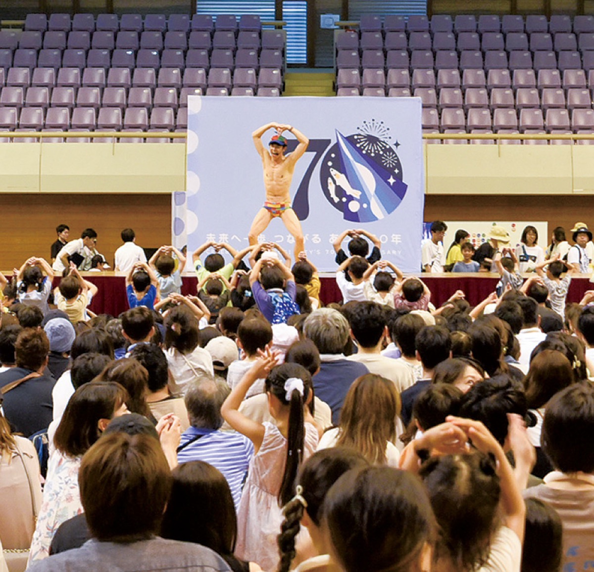 未来を担う子どもたちの故郷への愛着と誇りを深めるため、市制70周年記念事業として実施。当日は、世界選手権優勝を果たしたATSUGI ALL☆STARSの演技や、お笑い芸人の小島よしおさんが登場。eスポーツ体験ブースなども賑わった。