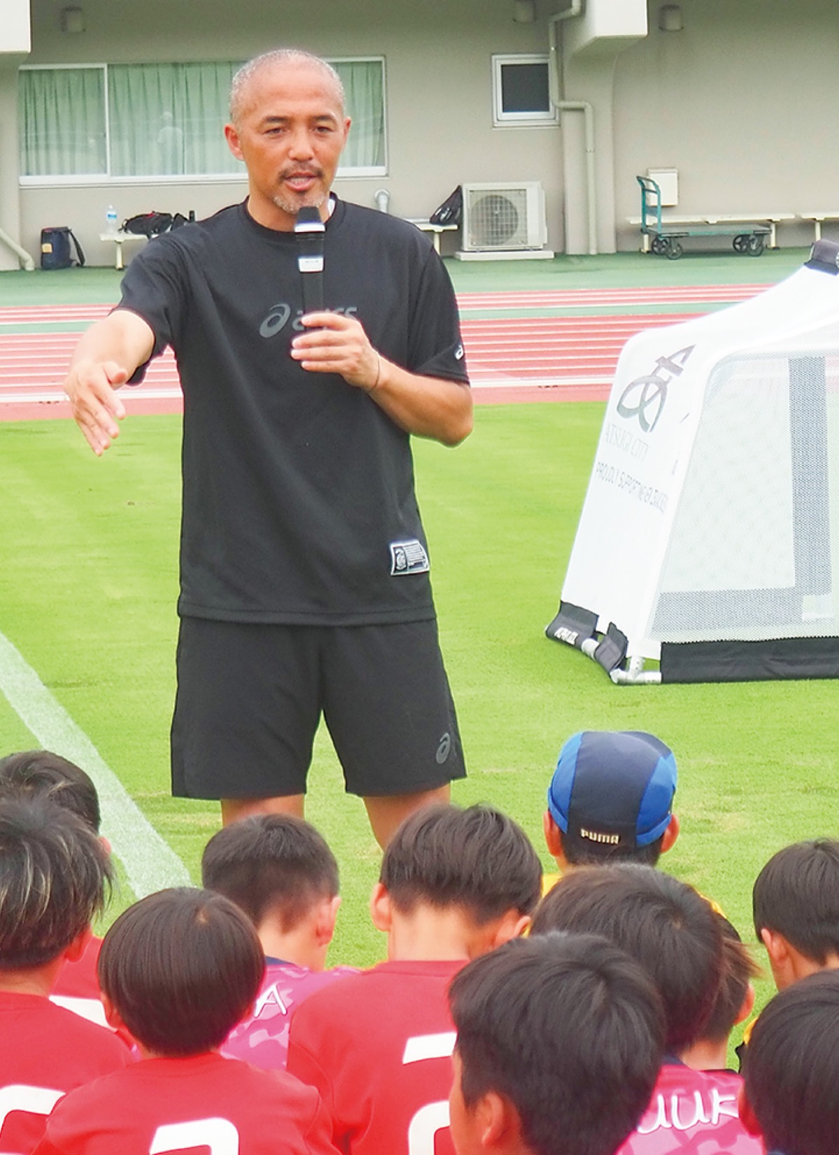 「荻野運動公園サッカークリニック」が7月5日、同公園競技場で行われ、日本代表としても活躍した小野伸二さんが講師を務めた。