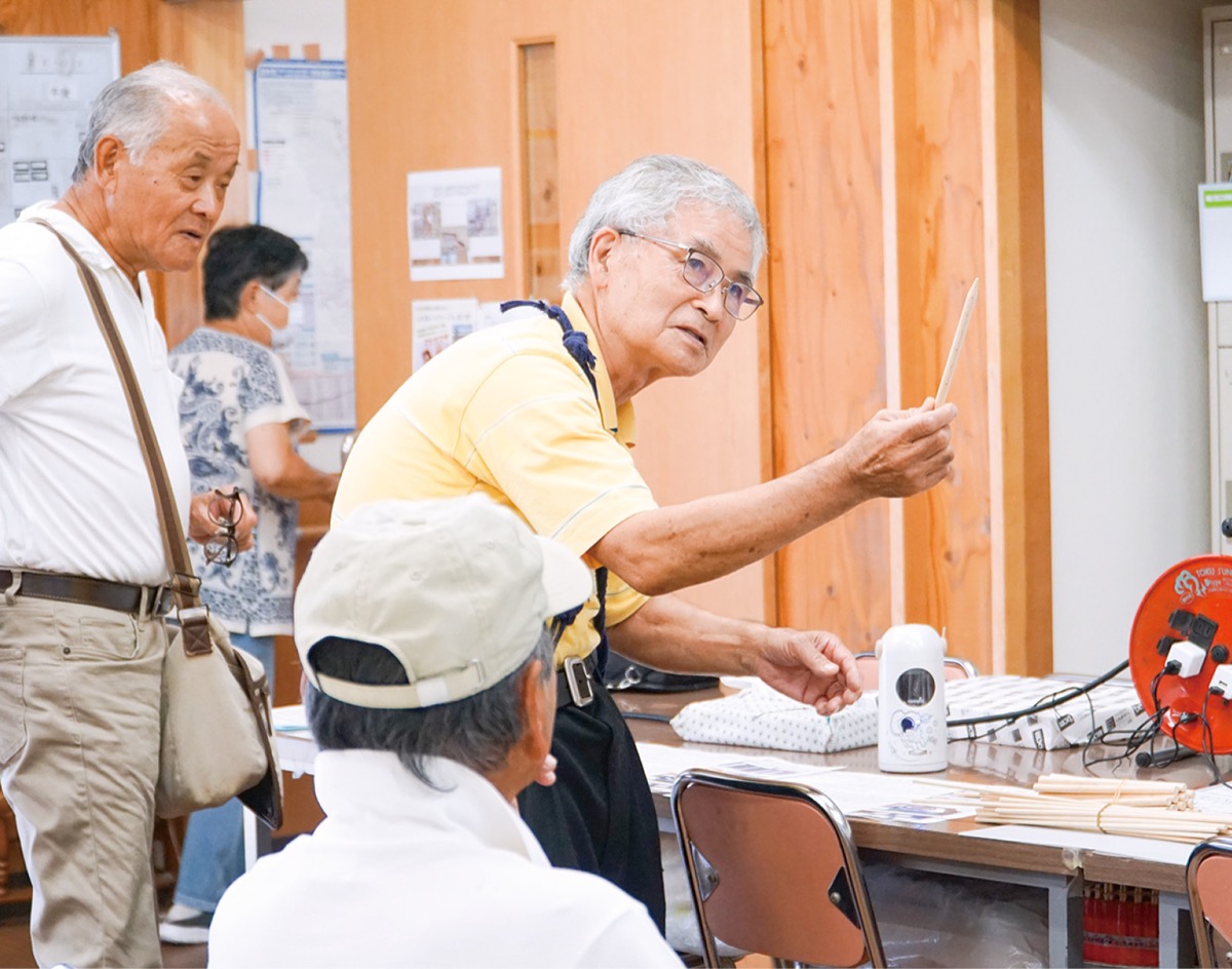 この日の講師は座間市内で駆除活動に取り組む「座間安全・安心推進会」会長の小林覚さん。小林さんは、座間市内の公園や街路樹で実践している、廃ペットボトルや木栓を利用した独自の駆除方法について説明した。