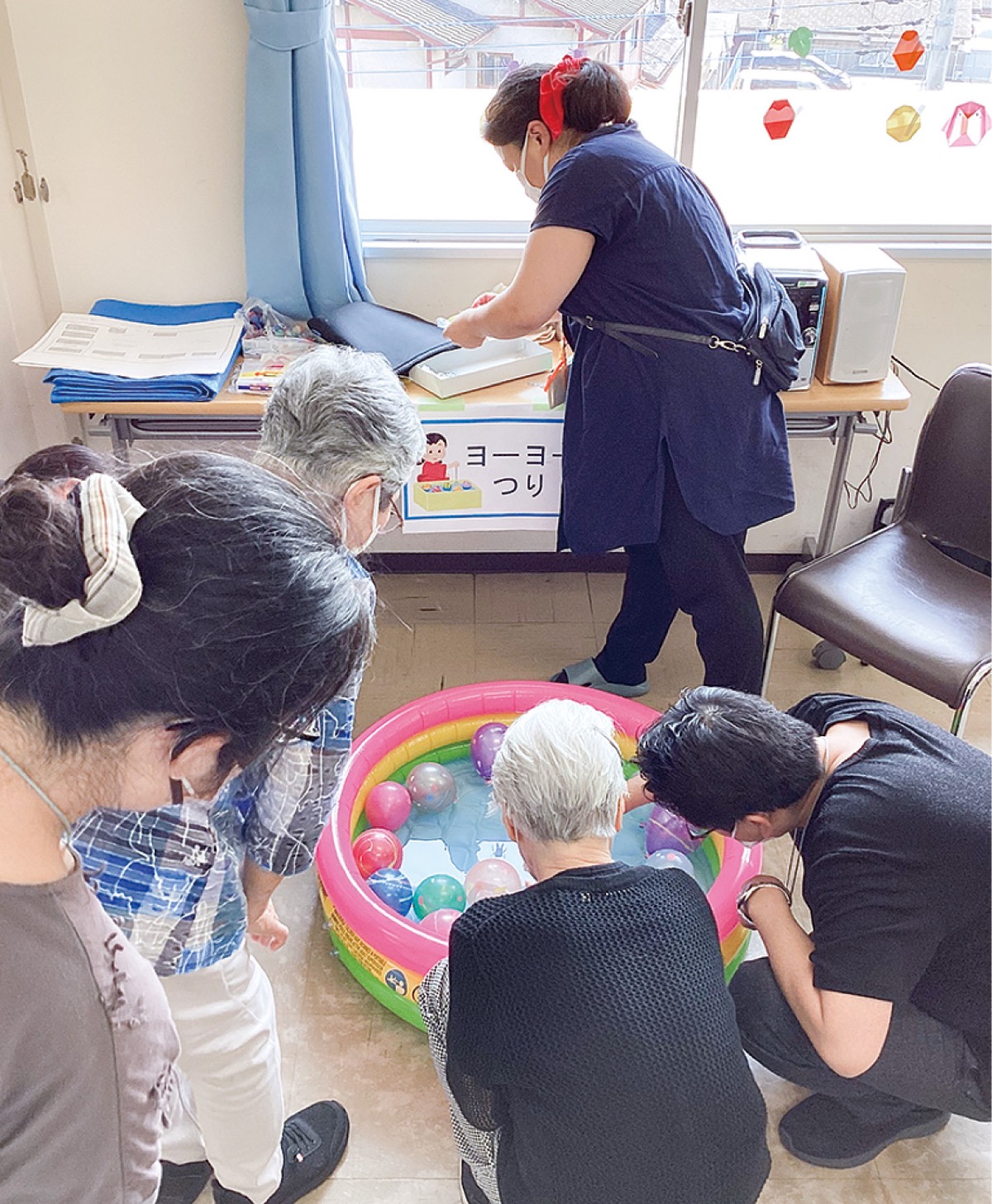 当日は5つの福祉事業所が雑貨やパウンドケーキなどを持ち寄り販売したほか、ヨーヨー釣りやポップコーンなどの模擬店が用意された。