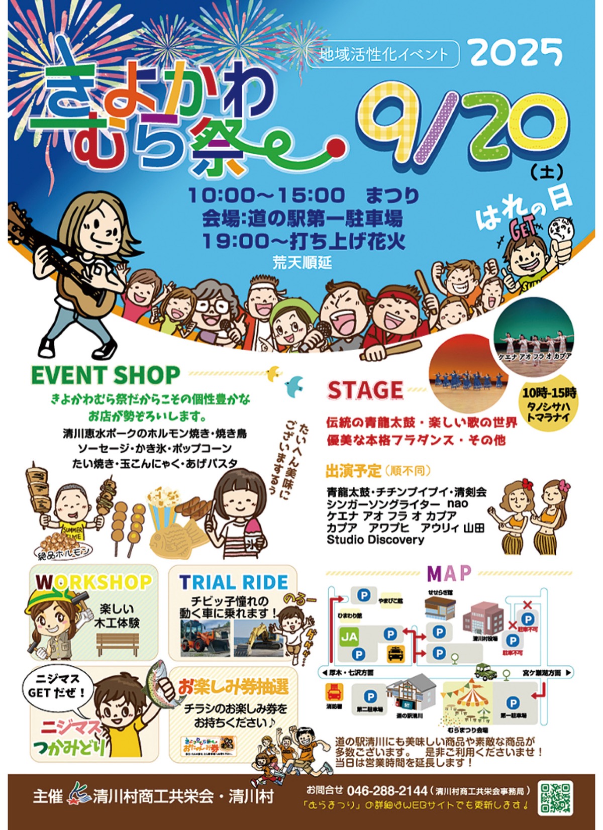 清川村商工共栄会は、村の魅力を伝える「第2回きよかわむら祭り」を、9月20日(土)に道の駅清川第一駐車場で開催する。