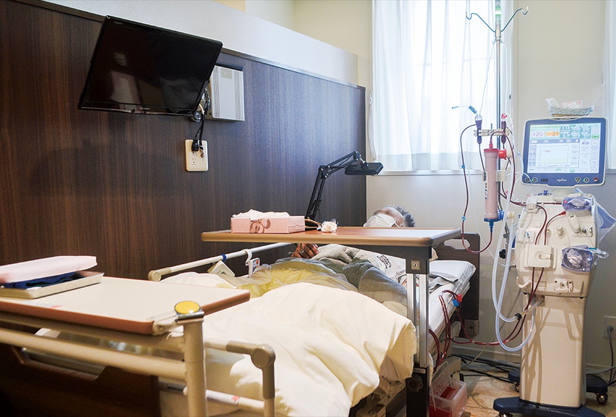 国道246号沿い、下糟屋交差点にある「湘英クリニック伊勢原医院」(田中克巳理事長)では、プライバシーの確保はもちろんのこと、感染症対策にも十分な配慮を払い、「全室個室」を基本とした透析スペースを用意している。