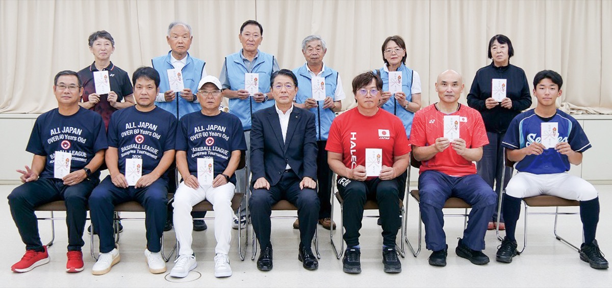 愛川町は、町民のスポーツ活動への意識高揚を図るため、全国大会や国際大会などに出場した町内在住の個人および町内に所在する団体に対し、出場経費の一部を助成する奨励金を交付している。この度、12人への交付式が9月25日に愛川町役場で開催され、奨励金交付後、出場者一人ひとりから大会への意気込みや感想が語られた。