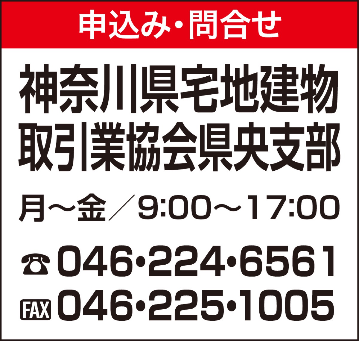 (公社)神奈川県宅地建物取引業協会県央支部(三橋義人支部長)主催の「六士業専門家による無料相談会」が、12月6日(土)の10時〜16時に同支部で開かれる(予約制)。予約時間5分前の来場をお願いしている。
