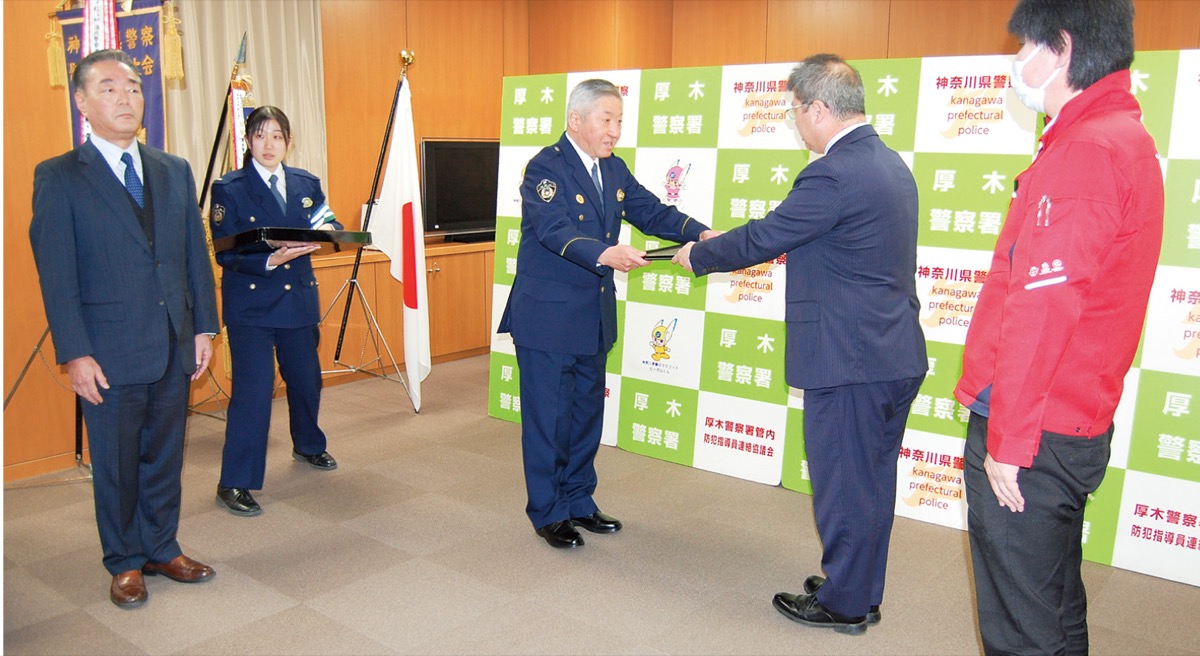 湘南物流株式会社(阿部勝雄代表取締役社長)が「優秀安全運転事業所表彰制度」で銀賞に選ばれたことを受け、11月18日に厚木警察署で表彰された。表彰式には、同署の阿部勇署長と主催する自動車安全運転センター神奈川県事務所の宮崎哲也副参事も出席し、同社へ賞状と盾が贈られた。