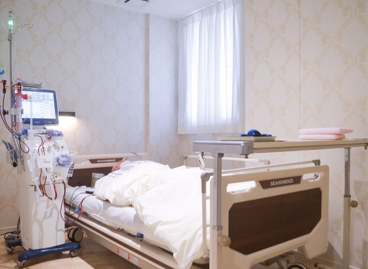 同院では、プライバシー確保はもちろんのこと、新型コロナウイルスやインフルエンザなど感染症にも十分な配慮を払い、全ベッド個室(一部セミオープン)を基本とした透析スペースを用意している。個室はベッドタイプまたはチェアタイプから選ぶことができ、「静かな環境で、他の患者さんの視線を気にせず、くつろいで透析を受けていただくことができます」と田中理事長。