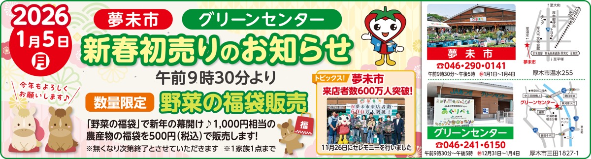 本年もJAあつぎの総合事業の機能を発揮し、組合員と地域住民の生産と暮らしを豊かにしていけるように取り組んでまいります。