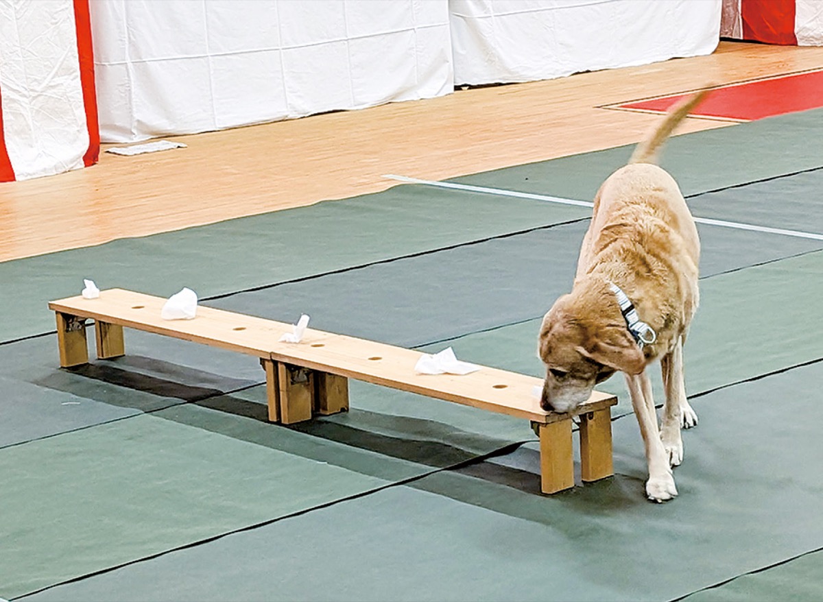 また、今年は同署で初めてとなる訓練犬による実演も行われた。伊勢原市の須山ドッグスクールに所属する3頭が登場し、複数のスーツケースの中から爆発物を想定した一つを捜し当てる訓練や、特定のにおいが付いた布を嗅ぎ分ける選別作業を披露。訓練犬の愛らしい姿に会場からは「かわいい」といった声も聞かれたが、見事に正解すると大きな拍手と歓声が上がり、会場は和やかな雰囲気に包まれていた。