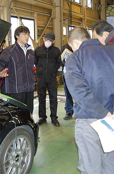 秦野市の(有)湘南車検センター(本城達也社長)で1月27日、自動車整備新技術の講習会が開かれ、県自動車整備振興会秦野伊勢原支部(秋山順造支部長=(有)秋山自動車整備工場)の会員有志6人が参加した。