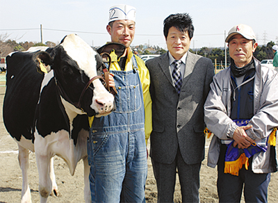 最高位に選ばれた乳牛を出品した亀井さんは「日ごろの飼養管理が実を結びうれしく思う」と話した。