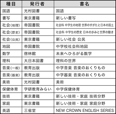 中学校教科書 来年度から4年間使用
