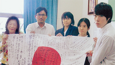 加奈音楽事務所夢乃会主催のチャリティーイベント『応援しよう!東日本チャリティーショー』が9月18日に市民文化会館大ホールで開催された。会場内には東日本大震災への募金箱のほか、被災地へのメッセージをつづる国旗も置かれた。