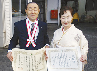 鈴木さんはこれまで25年以上にわたり安全運転管理者会で活動。1996年からは同会の会長を務め、現在も各季の啓発運動など市内の交通安全に取り組んでいる。そうした功労が認められ、2004年には緑十字銀章も受章した。