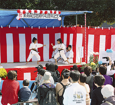 式典では、高山松太郎市長をはじめ多くの来賓が駆けつけ、住民たちと40周年の節目を祝った。団地に住む子どもが多く所属する、日本空手協会高森支部による空手道演武や、地域のサークルによるマジックショーやフラダンスなども併せて行われ、式典に花を添えた。会場では、豚汁や焼き鳥、綿菓子、宝くじなどの模擬店も自治会役員たちによって出され、お祭り気分を盛り上げていた。