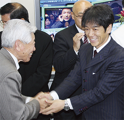 午後11時45分ごろ、テレビで「当選確実」が報じられると、市内田中の選挙事務所は大きな拍手と歓声に包まれた。最後まで勝敗が分からない接戦だったこともあり、吉報に涙を流す支援者の姿もみられた。