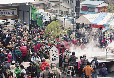 直径4mの巨大鍋で大山菜入りの湯豆腐を振舞う「仙人鍋」には今年も長蛇の列ができた。山伏にふんしたスタッフが2日間で2千人分作ったが、足りなくなってしまうほどの人気だった。椀子豆腐の早喰い大会や手造り豆腐体験なども盛り上がりをみせるなど、訪れた人たちは大山の味覚に舌鼓を打ちながら楽しい時間を過ごしていた。