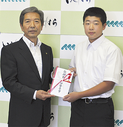 5月に行われた世界ジュニアゴルフ選手権日本代表選抜決勝大会13〜14歳男子の部で3位入賞した内田直輝君(伊勢原中2年)が7月3日、市役所を訪れ、市長を表敬訪問した。内田君は、過去にタイガーウッズや石川遼なども出場した、アメリカ・サンディエゴで7月に開催される世界ジュニアゴルフ大会に出場する。