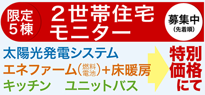 同社では施主様の協力により、2世帯住宅の完成現場見学会を市内で10月20日(日)と27日(日)、午前10時から午後4時まで行う。予約制につき電話で予約を。