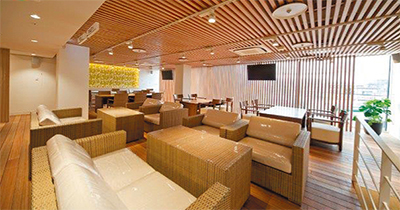 CIZAは、南国リゾートがテーマのくつろぎ空間。おしゃれで清潔感あふれるラウンジとデッキは、リゾート気分を盛り上げる。