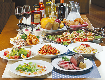 「パーティプラン」は2625円と3675円の2種類。いずれも前菜・サラダ・カルパッチョ・フライ盛り合わせ・パスタ(2種)と続く(※3675円のコースはさらにメインの肉料理とデザート付)。手作りにこだわっている料理はジャンルも様々で、一番人気のオムライス(=写真)のほか、ロコモコ、パスタ(全8種)も見逃せない。もちろん飲み放題も充実。ビール、カクテル、ワイン、サワーなど50種以上あり、90分1575円。