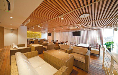 CIZAは、南国リゾートがテーマのくつろぎ空間。おしゃれで清潔感あふれるラウンジとデッキは、伊勢原にいながらリゾート気分を盛り上げてくれる。