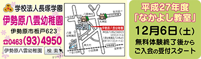 さまざまな体験学習を通して情操教育を実践している伊勢原八雲幼稚園では未就園児と保護者を対象にした「なかよし教室」の参加を募っています。