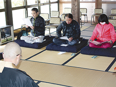 「音読によって大体の意味を把握する訓練は、読経の際にも役立ちます」と吉川住職。今後も座禅と合わせて色々な英文を扱っていく予定だ。