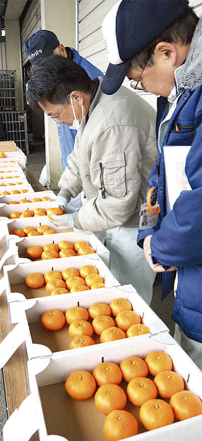 また1月22日には、市内の柑橘栽培農家による「ミカン」の持寄品評会も実施。大津や青島など26点が出品され、糖度や酸度などの審査が行われた。