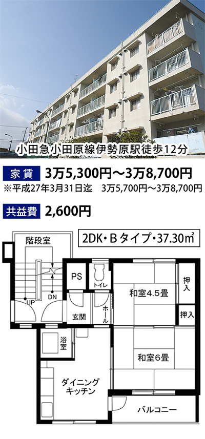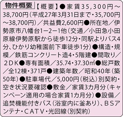 現在春の新生活応援キャンペーン中。今回ご案内するキャンペーン対象物件は「伊勢原共同住宅」。小田急小田原線伊勢原駅より徒歩12分と利便性が高く、2DKで賃料3万5300円〜。ファミリーはもちろん、法人・学生・単身入居も可。