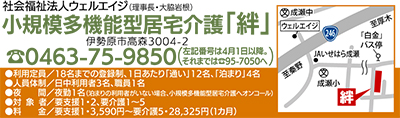 市内高森に4月1日(水)、野崎宏氏(高森)の施設提供により小規模多機能型居宅介護サテライト「絆」を核とした24時間在宅介護を支援する一体的事業所がオープンする。事業を運営する社会福祉法人ウェルエイジ(大脇岩根理事長)ではこれまで地域の在宅高齢者を支える各種介護保険サービスに取り組んできた。今回、地域の在宅支援をさらに充実させるため、新たに開設する運びとなった。