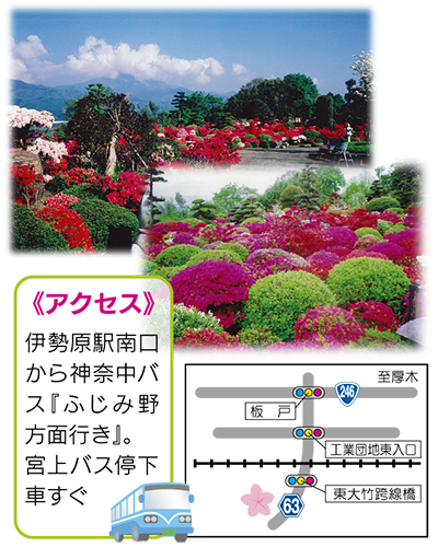 期間は4月20日(月)から30日(木)まで。約1500坪の敷地には「ヤマツツジ」や「クルメツツジ」など50種類・1千株以上のツツジ、数百株のボタンが植えられる。また高台にあり、晴れた日には富士山も望める。時間は午前9時から午後5時。駐車場は無し。個人の敷地なのでマナー厳守で。