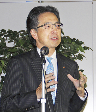 イベント説明の冒頭、磯部任代表取締役社長は「世界で戦えるアマダグループの基盤を作っていきたい」と挨拶。戦略と継承、メーカーとしての原点回帰をキーワードに、海外ビジネスやレーザービジネスなどの新たな成長分野を掲げた。