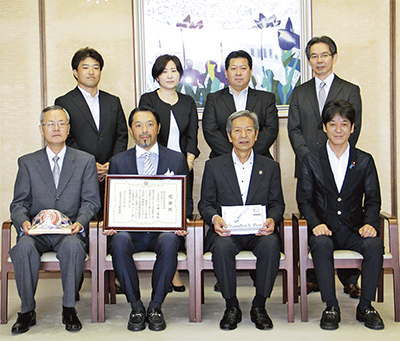これは同社が子どもたちの英語力向上をめざして全国的に行っている事業のひとつ。同日、市役所市長公室を訪れた小嶋氏は「使って楽しい教材、英語に親しむきっかけになれば」とコメント。「とてもありがたい。グローバル社会に出る子どもたちの一助にしたい」と、高山松太郎市長から感謝状が贈られた。教材は各小学校で利用される予定。