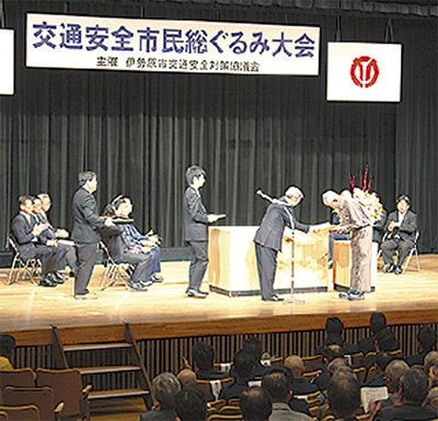 【市交通安全対策協議会会長表彰】▽交通安全功労者/村谷丞相、石塚力夫、栗田孝司、大森忠雄、坪井清明、西村直樹、荒巻康博、杉本久男、所昭雄、麻生輝夫、南雲正勝、府川美佐雄、近藤保、飯田こま子、古谷清久、古谷博子、▽交通安全協力団体/向上高等学校サッカー部【伊勢原警察署長表彰】▽交通安全功労者/北川昇、佐川一男、安達博子、鈴木澄雄【伊勢原警察署長・伊勢原交通安全協会会長連名表彰】▽交通安全功労者/渡辺節雄、堀江敬太【伊勢原交通安全協会会長表彰】▽交通安全協力者/酒井修、平野誠一、北野英、高橋敏彦、鈴木茂正、原田哲夫、樋口孝、小泉盛明、大木栄【無事故・無違反、優良運転者県交通安全協会会長表彰】▽20年表彰/青柳円香、▽15年表彰/斉藤和寛、今井由高【伊勢原安全運転管理者会会長表彰】▽優良安全運転管理者/麻生明美((有)麻生建材)、坂本秀美((株)坂本組)、田邊直紀((株)神鋼産業)、▽優良事業所/伊勢原みのり幼稚園、(株)井上製作所、山田プロパン(株)、(有)足立工務店【県警本部長表彰】▽交通安全功労者(個人)/北川昇、柏木貞俊【県警本部長・地域活動推進委員協議会会長連名表彰】長嶋信博、足立兵一【県警本部長・県交通安全協会会長連名(緑十字銅賞)表彰】▽交通安全功労者/杉浦候二、川原正美、二見正明、山口祐二、山田満【県交通安全協会会長表彰】▽交通安全功労者/林一弥、松浦僖利【県警本部長・県安全運転管理者会連合会長連名表彰】▽交通功労者/多田政弘(龍屋物産(株))、▽優良事業所/(株)杉山土建、(株)横浜銀行伊勢原支店【県安全運転管理者会連合会長表彰】▽交通功労者/小澤秀章(県農協共済組合)、▽優良安全運転管理者/長島博美(長島建設(株))、島袋清光((株)鈴木油脂歌川工場)、長尾毅(濱田精麦(株))、▽優良運転者/三橋克彦(市消防本部)、加賀谷智雄(伊勢原自動車学校)、▽優良事業所/伊勢原市役所、鶴見コンクリート(株)伊勢原工場、学校法人向上学園