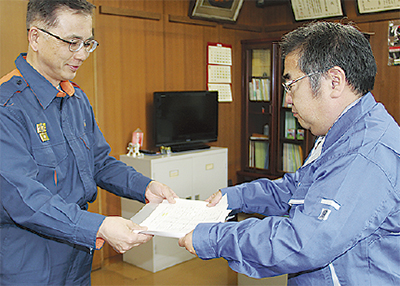 公益社団法人神奈川県LPガス協会・北相支部伊勢原部会(岡研二部会長)は1月29日、2月1日から県内一斉でスタートした火災等通報受理・出動体制『LPガス119』の協力要請のため、市内伊勢原の伊勢原市消防本部(吉川敏勝消防長)を訪れた。