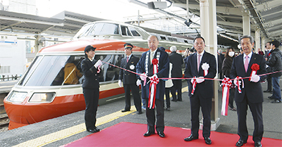 小田急線のダイヤ改正となった3月26日、小田急線伊勢原駅で特急ロマンスカーの初停車を記念した式典が開催された。